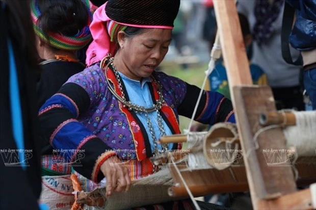 纺织工艺村吸引大量国内外游客前来参观尝试。(图片来源:越通社)