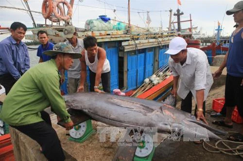 | 越南中部地区渔民海产采购活动。(图片来源:越通社) |