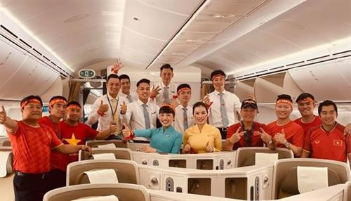 这是越南目前最大且最先进的飞机,给越南运动员在回国旅程中提供搭乘舒适体验。此外,越航还在飞机上为越南体育团举行庆祝派对。