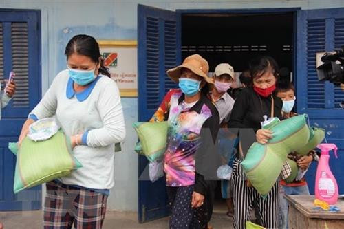 | 4月16日,大约100份慰问品送到柬埔寨干拉省贫困越裔柬埔寨人手中。图自越通社 |