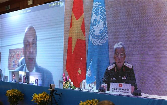 阮志咏上将介绍了越南参与联合国维和行动取得的结果,介绍了越南在非洲维和人员在疫情防控工作中所作出的努力。越南维和军官除了专业水平外,他们还参加为当地儿童教学、引导当地居民开展农业生产、进行卫生防疫工作、制作口罩免费送给各国同事和居民,帮助他们防疫等活动。
