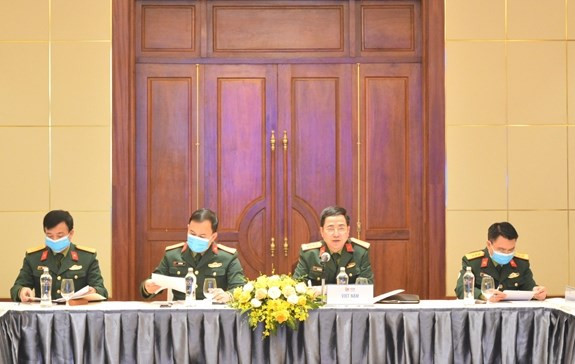国防部对外局副局长范孟胜大校(右二)主持会议。图自qdnd.vn