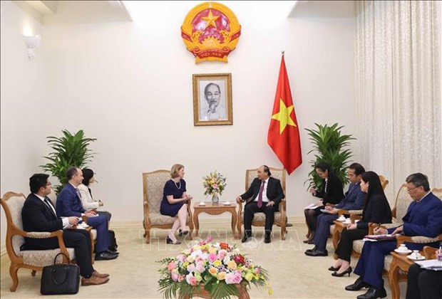 12月10日下午,越南政府总理阮春福在政府总部会见了即将离任的新西兰驻越南大使温迪·马修斯(Wendy Matthews)。