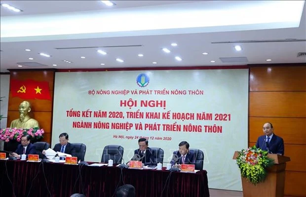 政府总理阮春福出席农业与农村发展部2020年任务落实情况总结和2021年任务部署会议并发表讲话。图自越通社