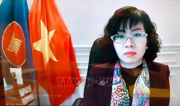 图为出席会议的 越南驻联合国教科文组织代表团团长黎氏红云大使。图自越通社