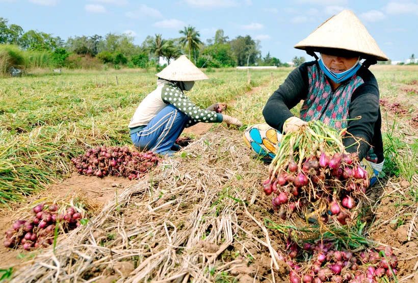 2. 朔庄省永州市永海乡欧寿甲村高棉族同胞——金莎莉(Kim Sary)先生家庭紫小葱头种植和南美白对虾养殖总面积约2公顷,每年带来利润约10亿越盾。