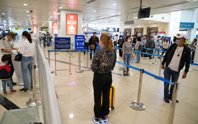 乘坐VJ458航班从富国机场飞往河内市内排机场的乘客在https://tokhaiyte.vn进行线上健康申报,同时密切关注自己的健康情况。