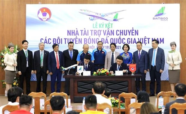 4月19日下午,越南国家球队的运输赞助商公布仪式在越南足球协会总部举行。越竹航空公司(越竹-Bamboo)将正式成为越南国家足球队为期3年(2021-2024年)的运输赞助商。
