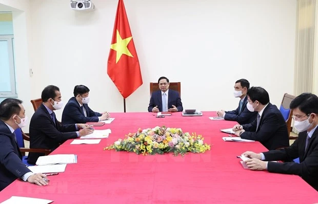 6月14日下午,越南政府总理范明政与法国总理让·卡斯特克斯(Jean Castex)通电话,就共同关心的国际和地区问题交换了意见。