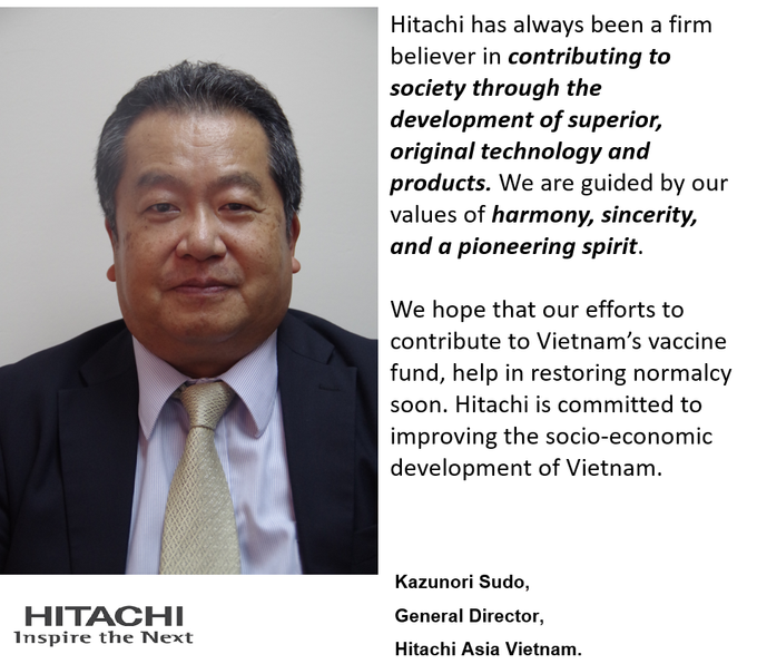 须藤和典表示,日立亚洲(越南)支持越南政府的这一主张,并预计为越南新冠疫苗基金会贡献8.49亿越盾(约合3.7万美元)。