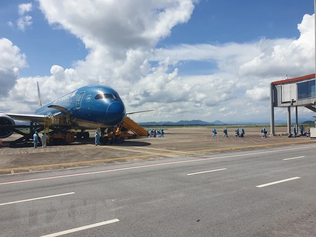 从日本出发的载有297名越南公民的VN5311号航班于9月4日13时30分安全降落云屯国际机场。图自越通社