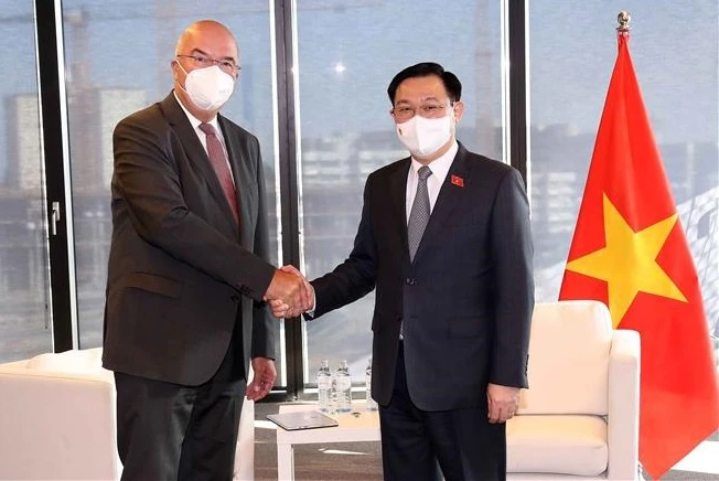 越南国会主席王廷惠会见奥地利IMC Krem 应用科技大学领导。图自越通社