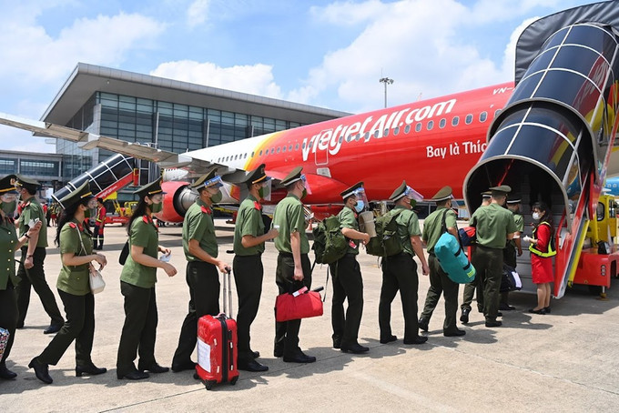 9月6日,越捷航空公司运送近1000名公安武警到胡志明市支援该市抗击疫情。
