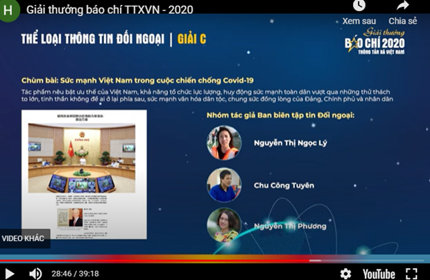 越通社对外信息编辑部的作品获得三等奖 图自越通社