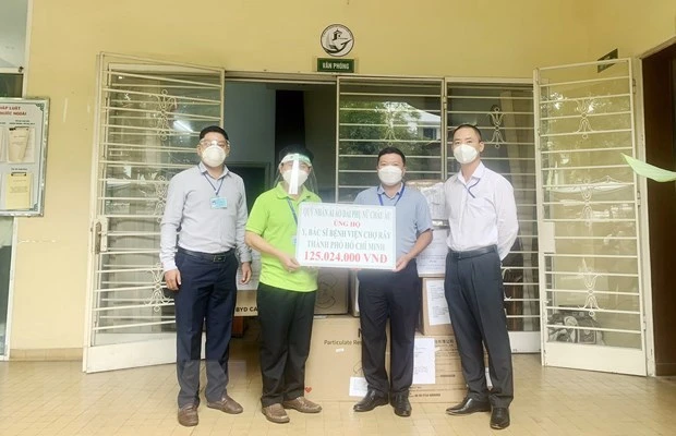 9月15日,胡志明市海外越南人事务委员会移交海外越南人和组织为胡志明市抗击疫情一线医务人员捐赠的资金及医疗物资。