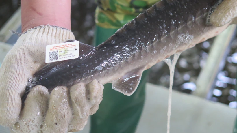 沙坝市五指山乡识梅鲑鱼场是老街省对5000条鲟 鱼贴上可追溯标签的第一个养殖场