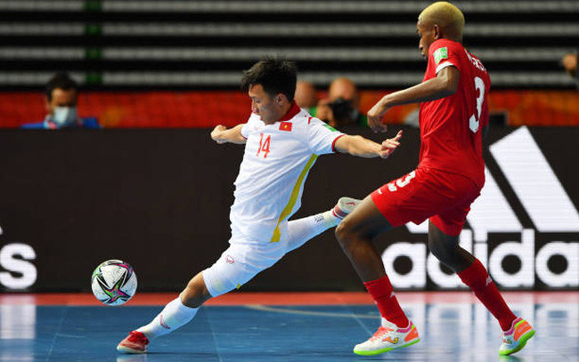 越南球员阮文孝(14号)获得2021年国际足联室内五人足球世界杯最佳进球奖。图自vietnamnet.vn