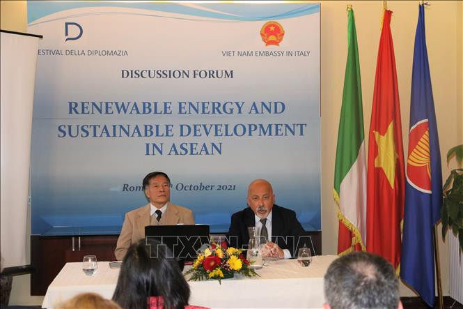 10月20日,越南驻意大利大使馆同意大利“外交节”(Festival della Diplomazia)协会配合举行题为“东盟可再生能源和可持续发展”专题研讨会。越南驻意大利大使阮氏碧惠,意大利-东盟协会副主席奥兰迪(Romeo Orlandi)以及东盟驻意大利各国大使馆代表,许多意大利和欧洲企业代表等出席。