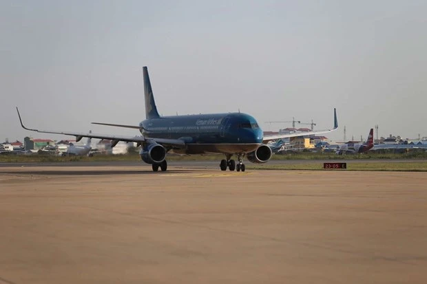 越航的VN853号航班于1月1日安全抵达柬埔寨金边国际机场。图自越通社