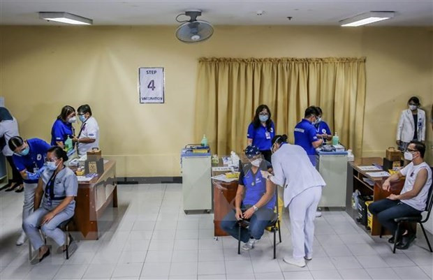 菲律宾医务人员向人民接种新冠疫苗。图自越通社