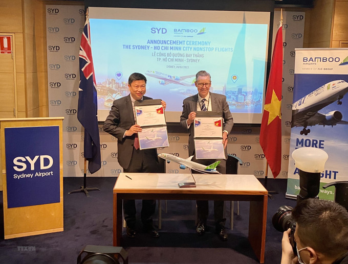 越竹航空公司正式公布开通胡志明市至悉尼国际直达航线并签署胡志明市至悉尼直达航线发展合作协议。图自越通社