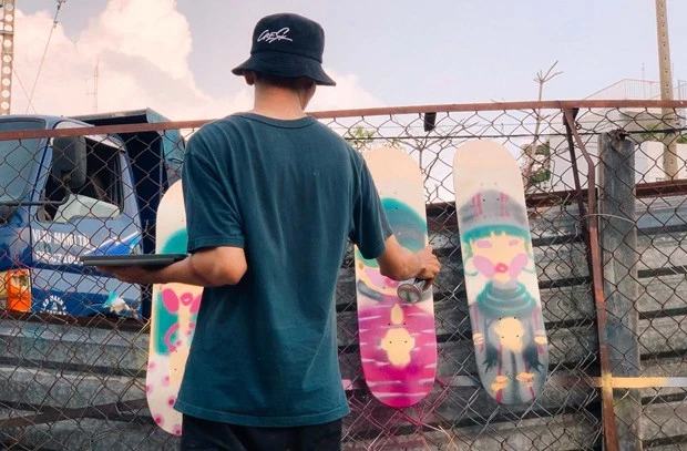 题为“Spraying Board Vietnam”的滑板及街头艺术展在胡志明市第一郡法国院举行。该展会由六名法国艺人和四名越南艺人配合举办,吸引众多青年人前来参加。