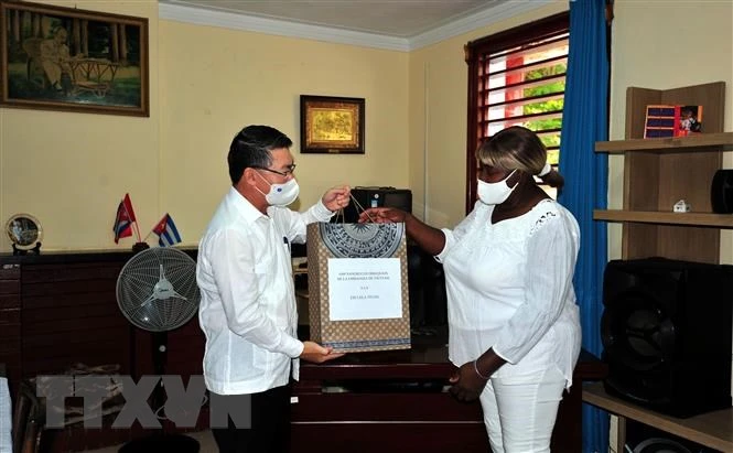 这是越南国家主席阮春福于2021年9月访问古巴期间,越南计划与投资部承诺向古巴教育机构赠送的礼物。值此之际,越南驻古巴大使馆向两所学校赠送新冠疫情防控物资,并向古巴对外投资与经济合作部和设在哈瓦那的阮文追小学转送礼物。